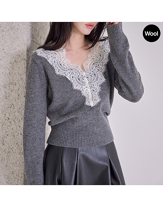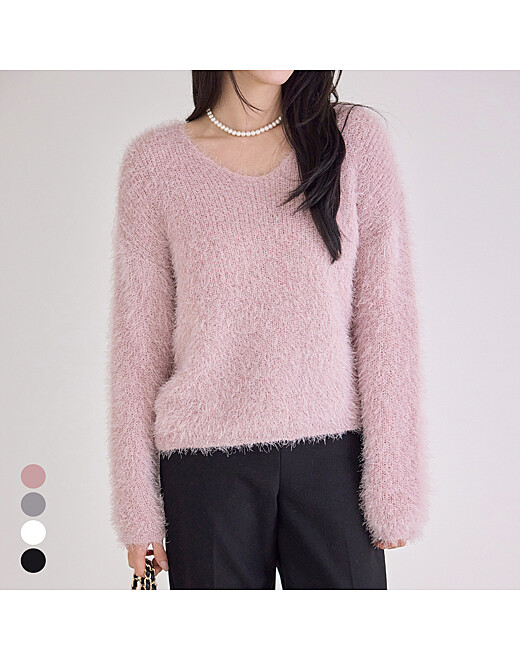 - 볼륨 퍼프소매 나그랑 브이넥 니트_M2410KN150D