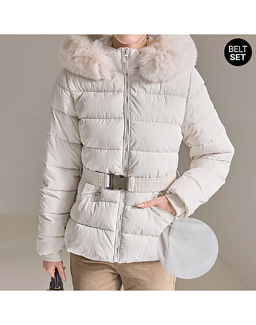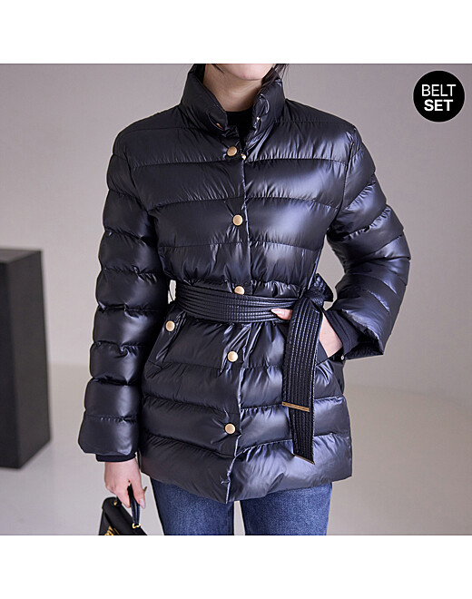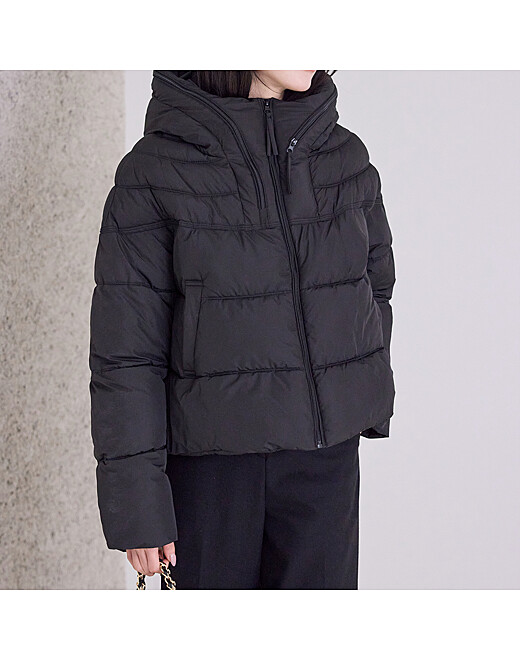 - 하이넥 후드 벨티드 하프 패딩 점퍼_M2411PD004D