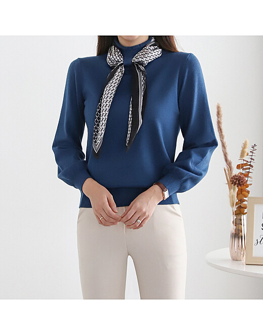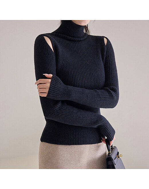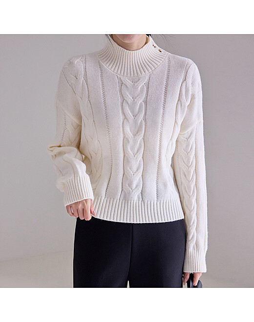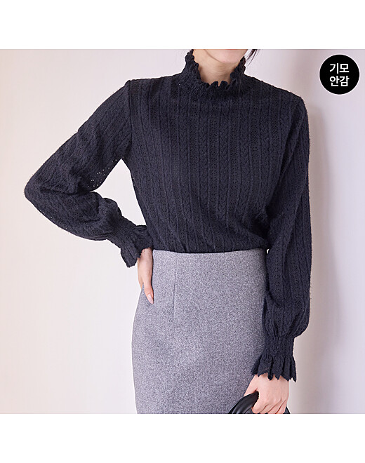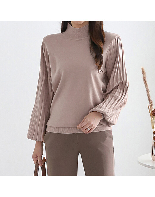 - 심플 벌룬소매 목폴라 니트_M2411KN164D