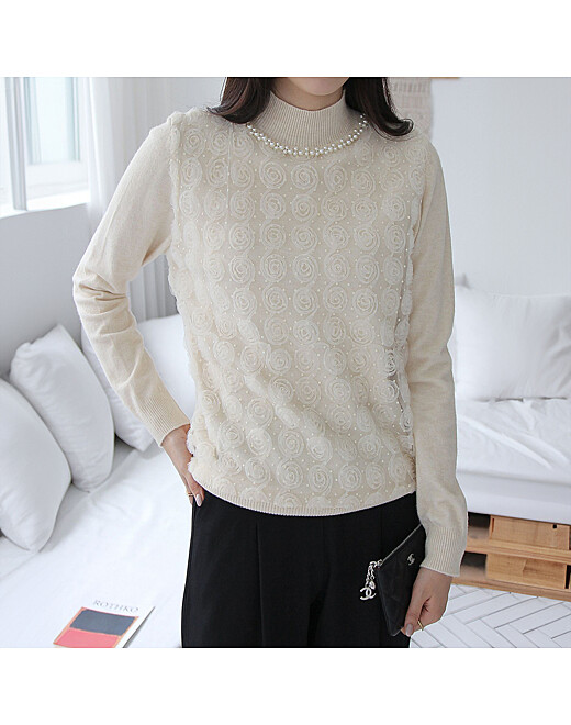 - 하이넥 레이스 텐션 티셔츠_M2512TS122D