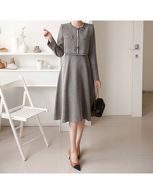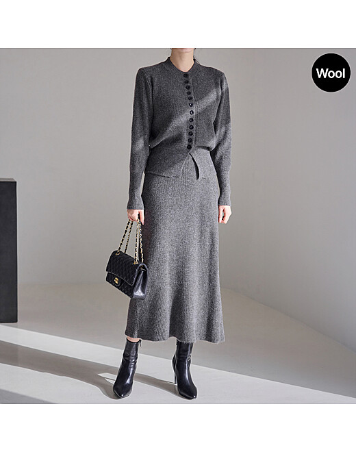 - 울 라운드 또또 가디건+롱 스커트 니트 세트_M2512SE082D