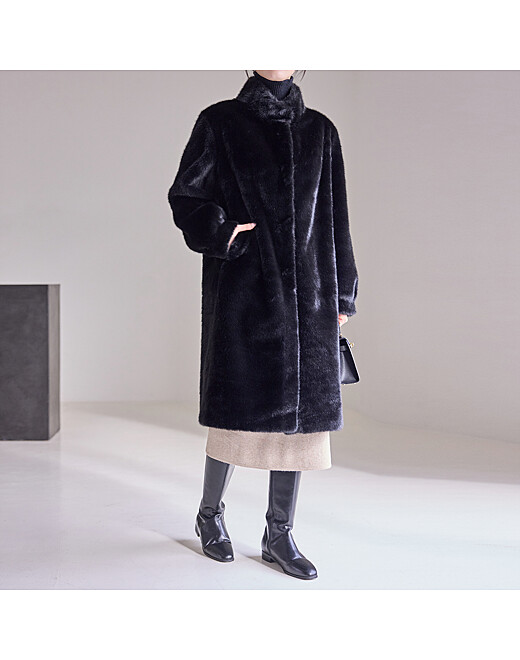 - 핀턱소매 반하이넥 모피 코트_M2512FU009D