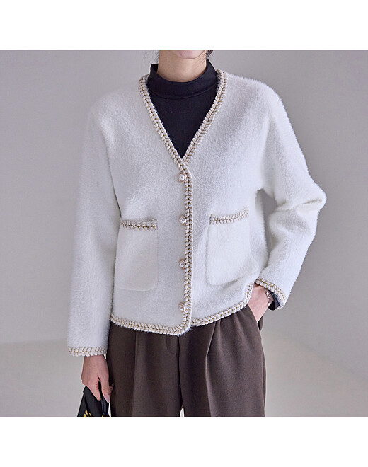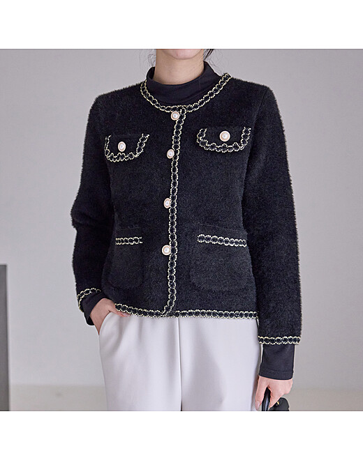 - 보석버튼 부클 트위드 가디건_M2501CD002A