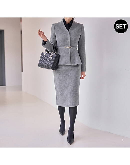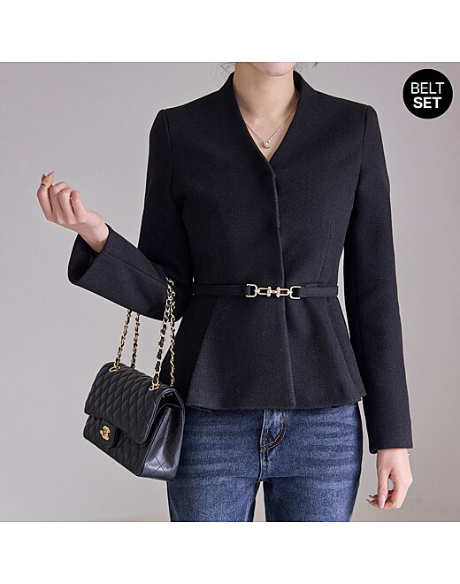 - [55-77]벨트SET 노카라 페플럼 모직 자켓_M2512JK065D