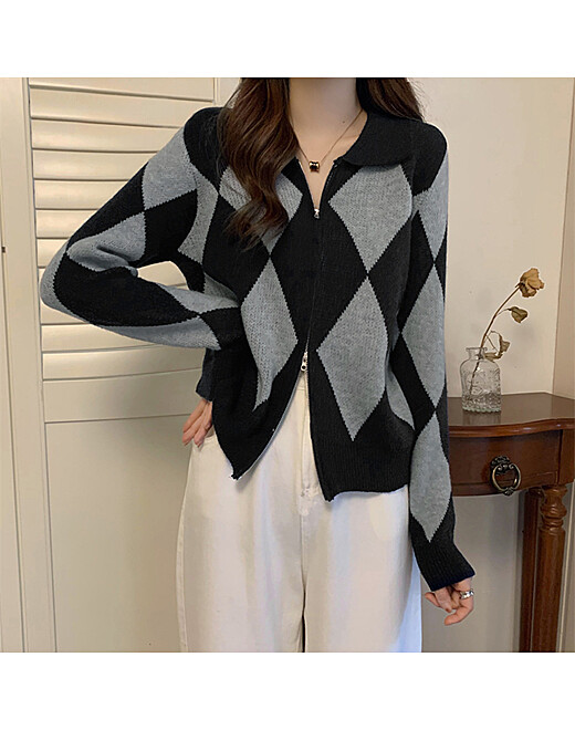 - 베이직 반목 니트 체크 원피스 2종세트_O2210SE607D