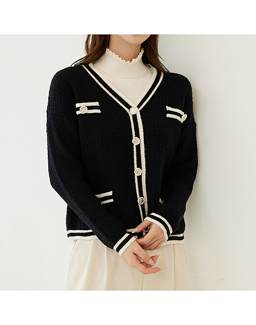 - 엔티크 브이넥 니트 배색 원피스_O2310OP110C