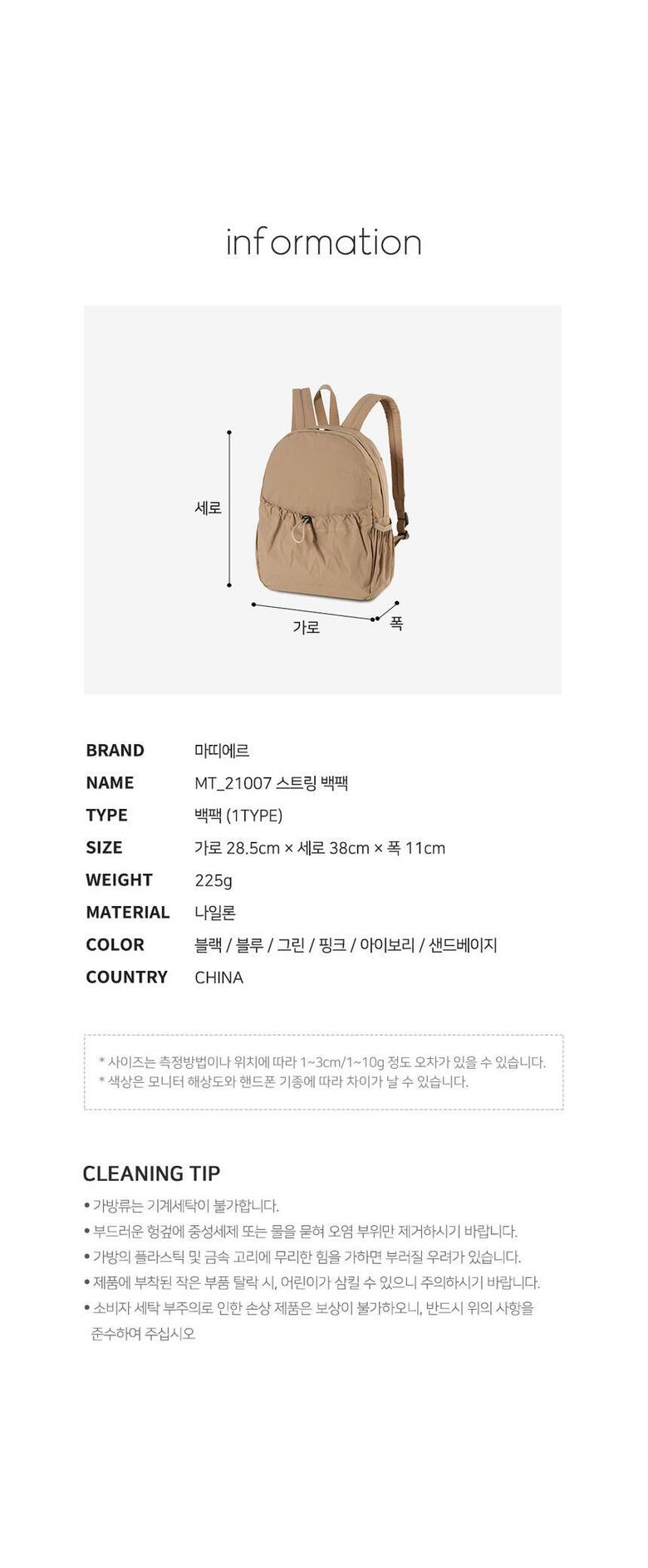 레네 남자 여성 경량 편한 데일리 스트링 백팩 가방