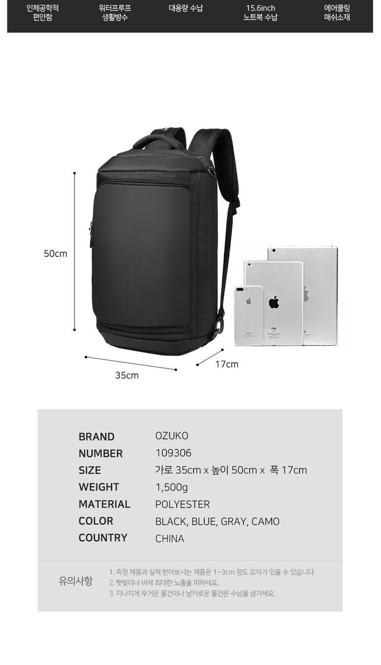 레네 남자 직장인 대학생 노트북 생활방수 캐주얼 백팩 가방