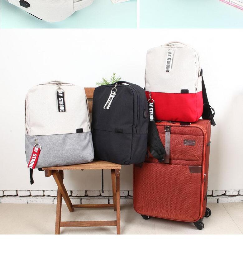 레네 남자 학생 직장인 USB장착 캐주얼 배색 백팩 가방