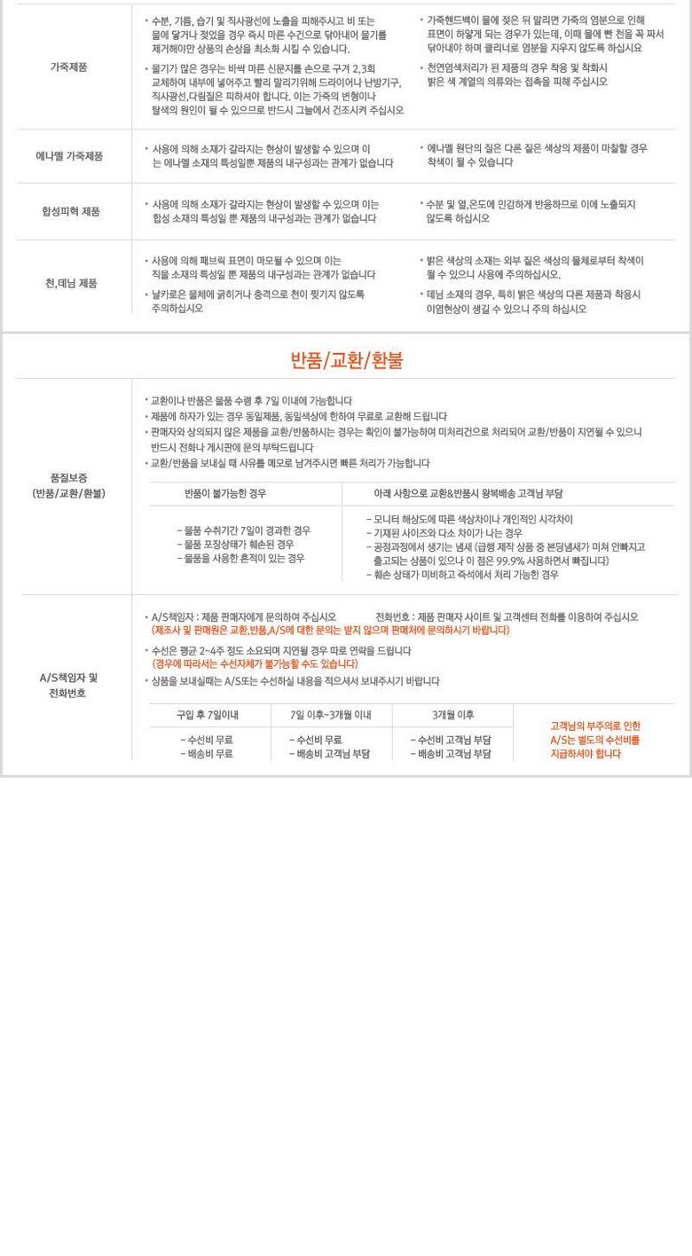 • 업체배송 상품은 해당 각 입점사의 교환정책에 따릅니다.