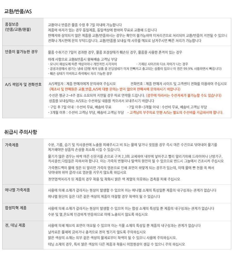 | 8. 품질보증기준 | 관련법 및 소비자분쟁해결기준에 따름 |