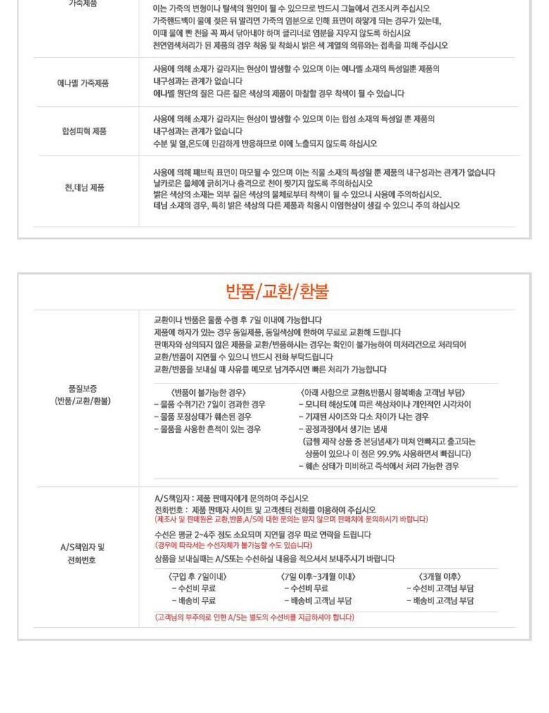 | 8. 품질보증기준 | 관련법 및 소비자분쟁해결기준에 따름 |