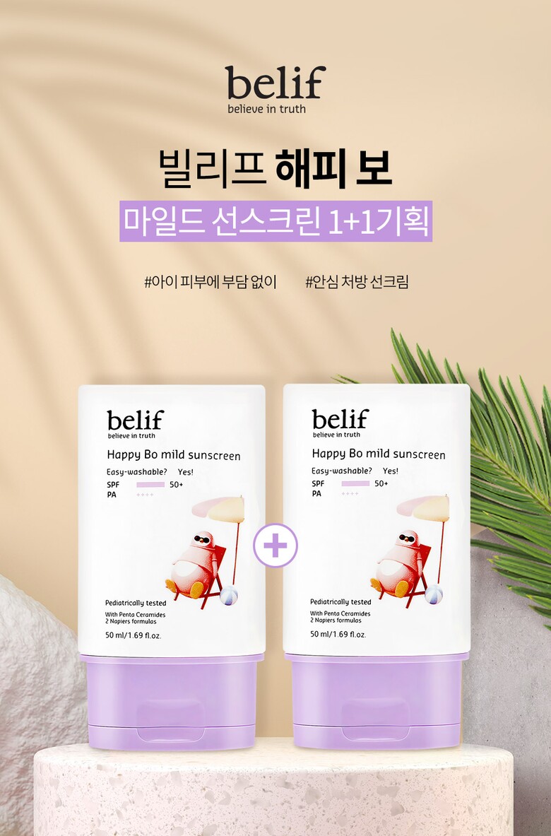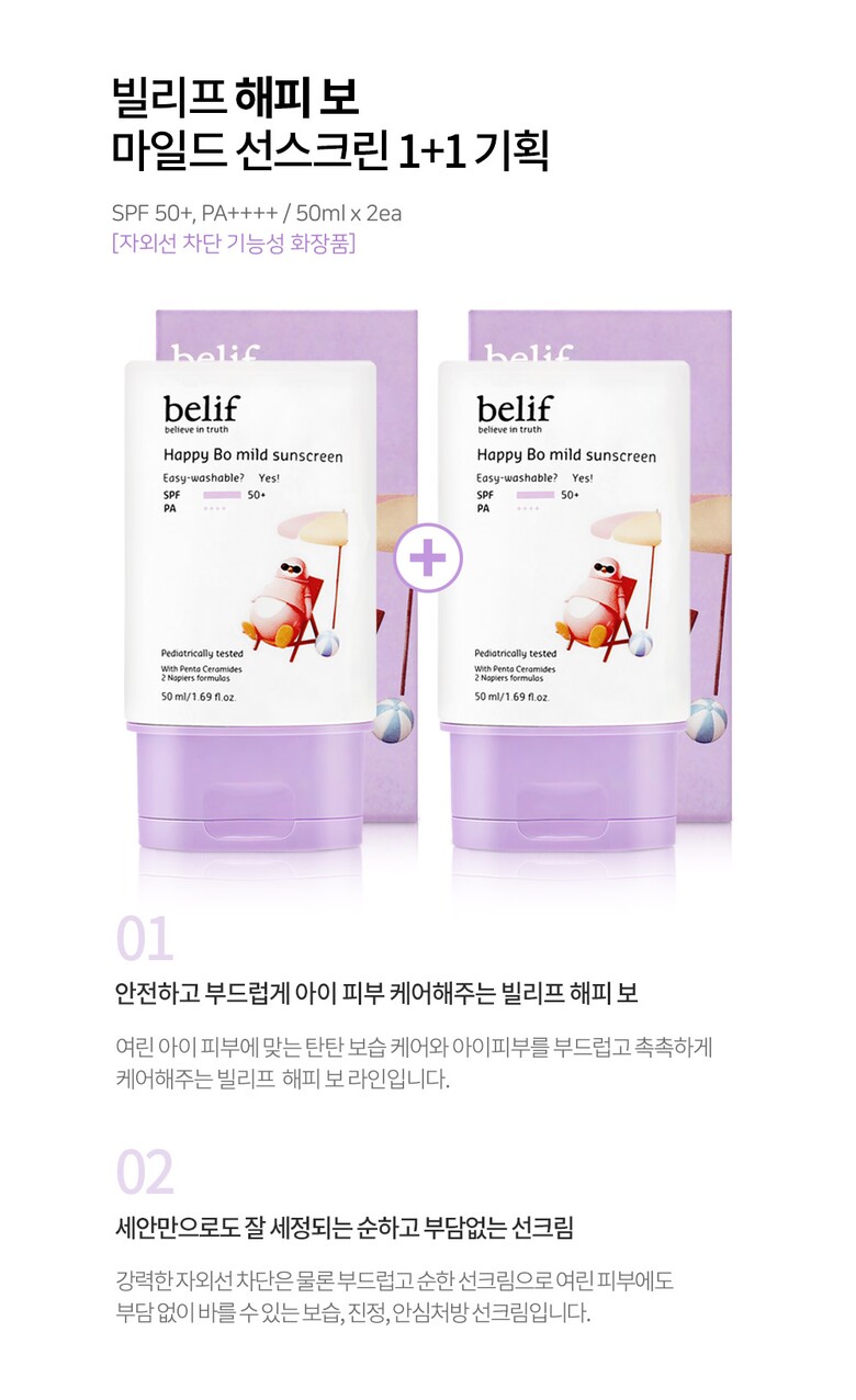빌리프 해피 보 마일드 선스크린 50mlx2개 어린이 선크림