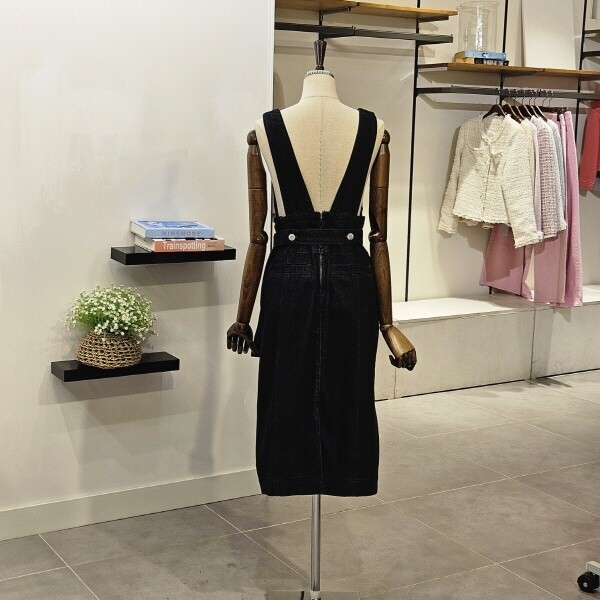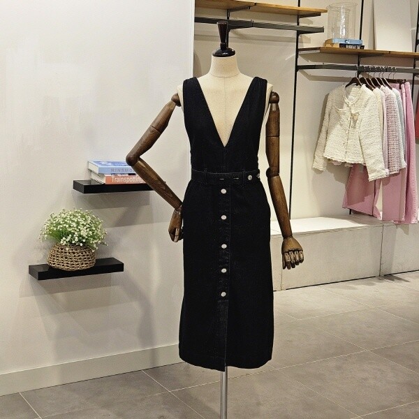 반에이크 B44DOU201A 벨티드 브이넥 데님 원피스