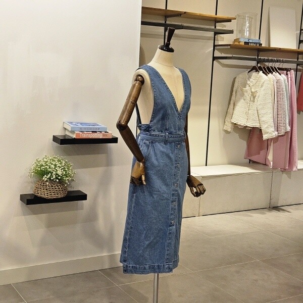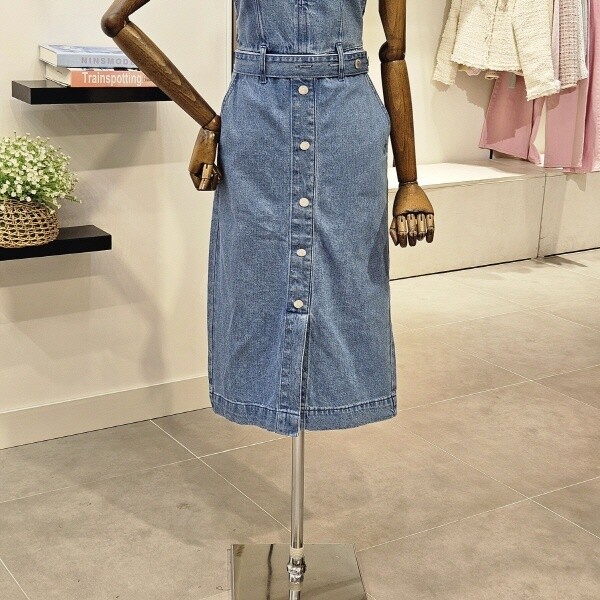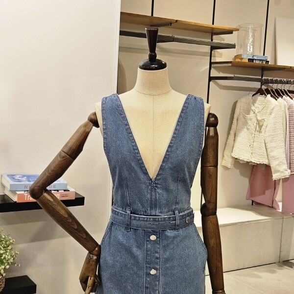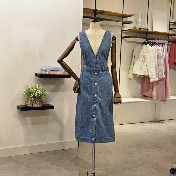 B44DOU201A_벨티드 브이넥 데님 원피스