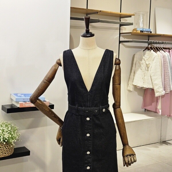 VA44DOU201A_브이넥 벨티드 데님 원피스