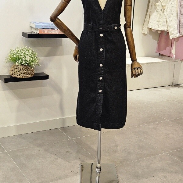 반에이크 VA44DOU201A 브이넥 벨티드 데님 원피스