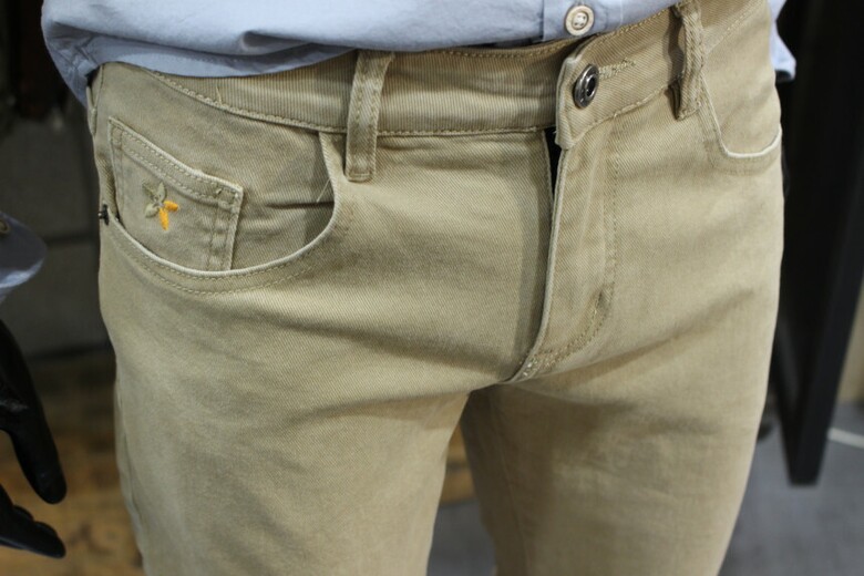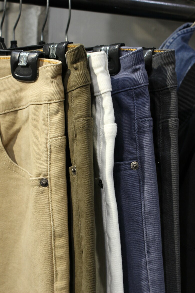 면바지스러운 느낌의 데님팬츠로 봄가을 캐주얼하게 연출하기 좋습니다