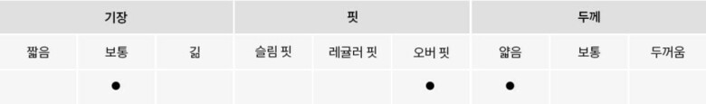 · 핏감 : □ 루즈 ■ 표준 □ 슬림