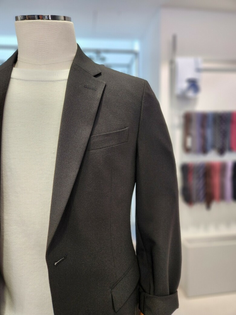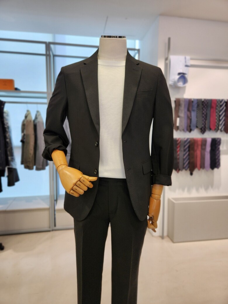 셔츠와 타이 코디도 가능하며 스웨터 와도 편안히 코디가 가능한 기본 셋업 입니다.