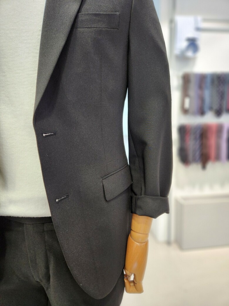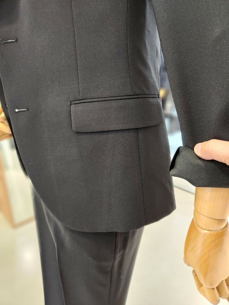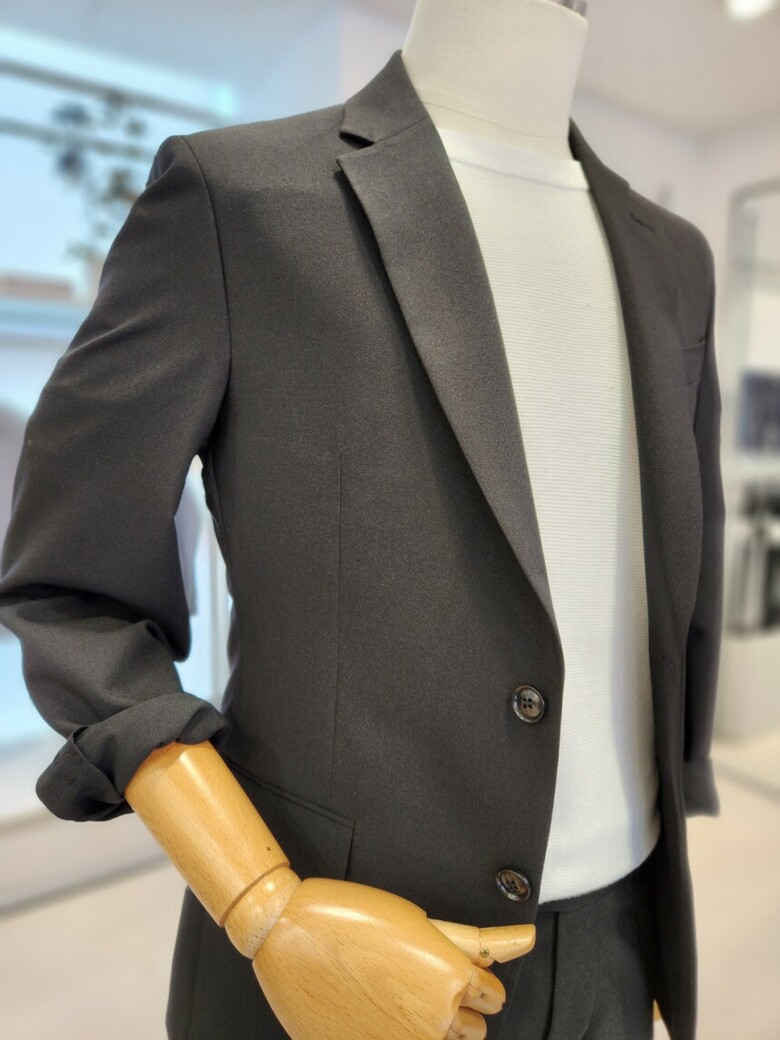 원단이 부드러우며 블랙 컬러의 셋업이라 슈트 대용 착장이 가능합니다.