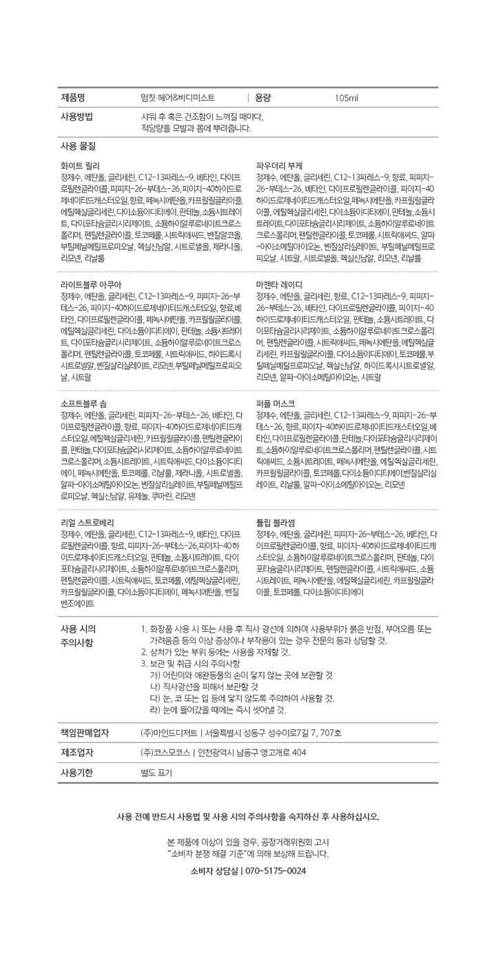 • 모든 규정은 전자상거래법에 의거하며, 택배사정으로 배송이 지연된 경우 재화를 공급받은 날로부터 7일 이내에 반품 가능합니다.