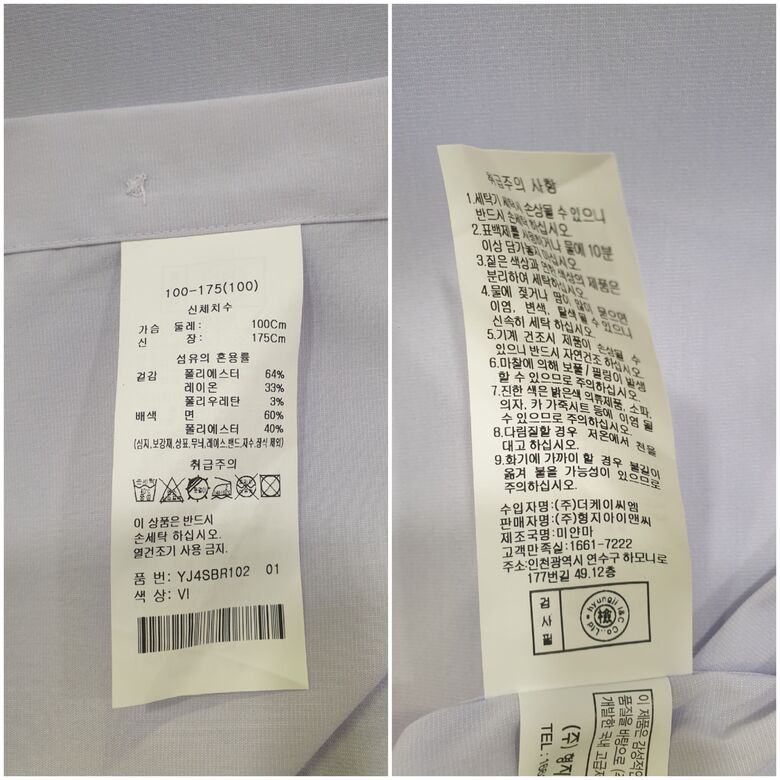 | 6. 세탁방법 및 취급시 주의사항 | 상품상세참조 |
