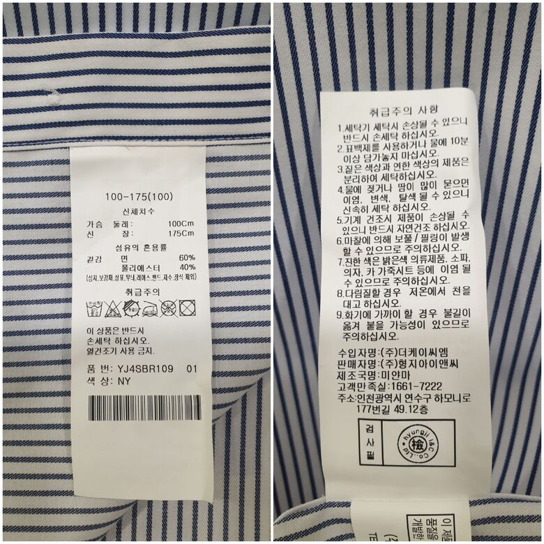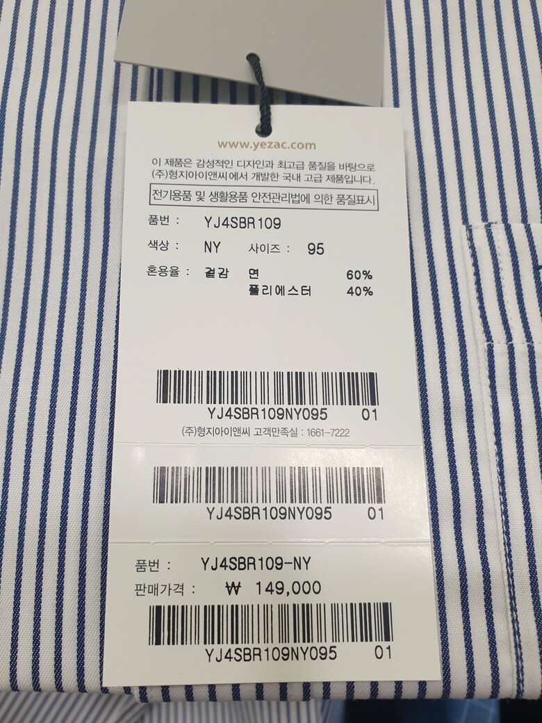 [예작셔츠] 면혼방 네이비 스트라이프 일반핏셔츠 YJ4 SBR 109 NY