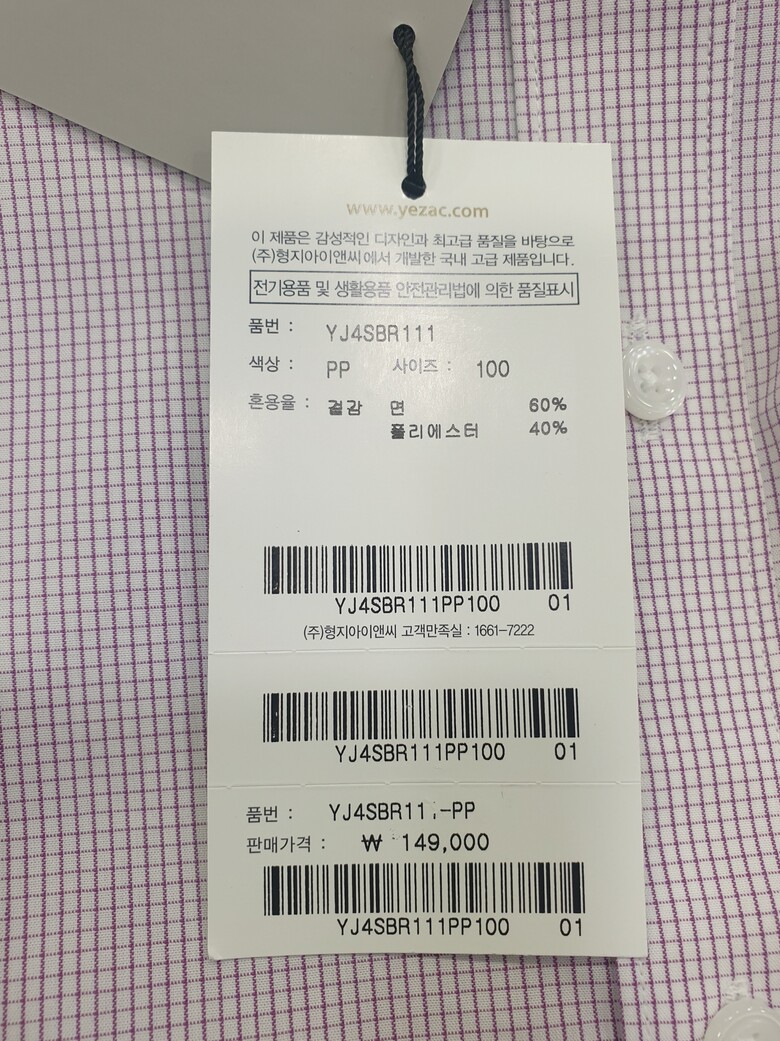 [예작셔츠] 면혼방 모눈잔체크 일반핏셔츠 YJ4 SBR 111 PP