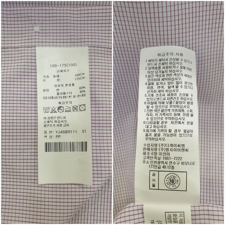 | 6. 세탁방법 및 취급시 주의사항 | 상품상세참조 |
