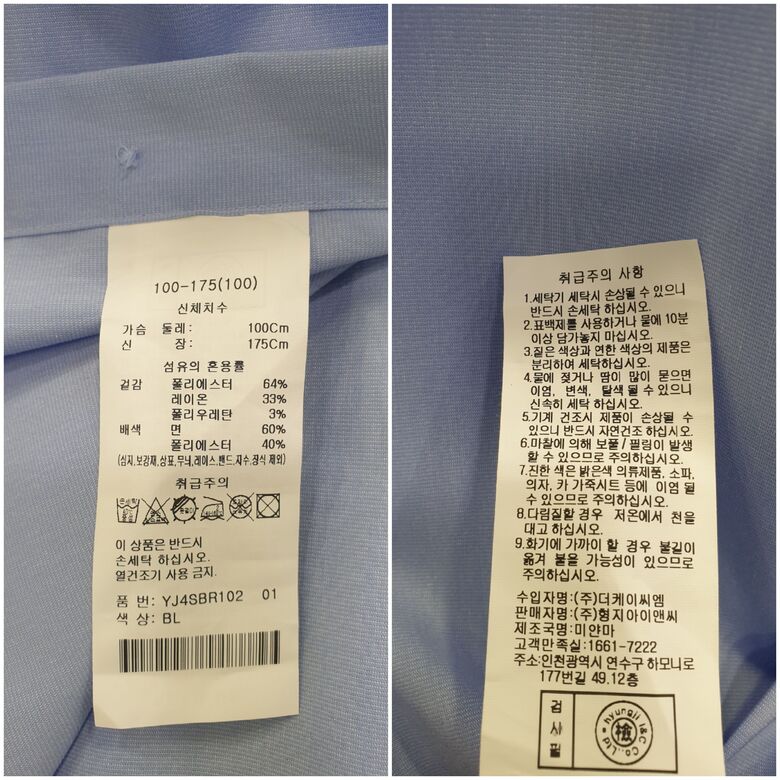 | 6. 세탁방법 및 취급시 주의사항 | 상품상세참조 |