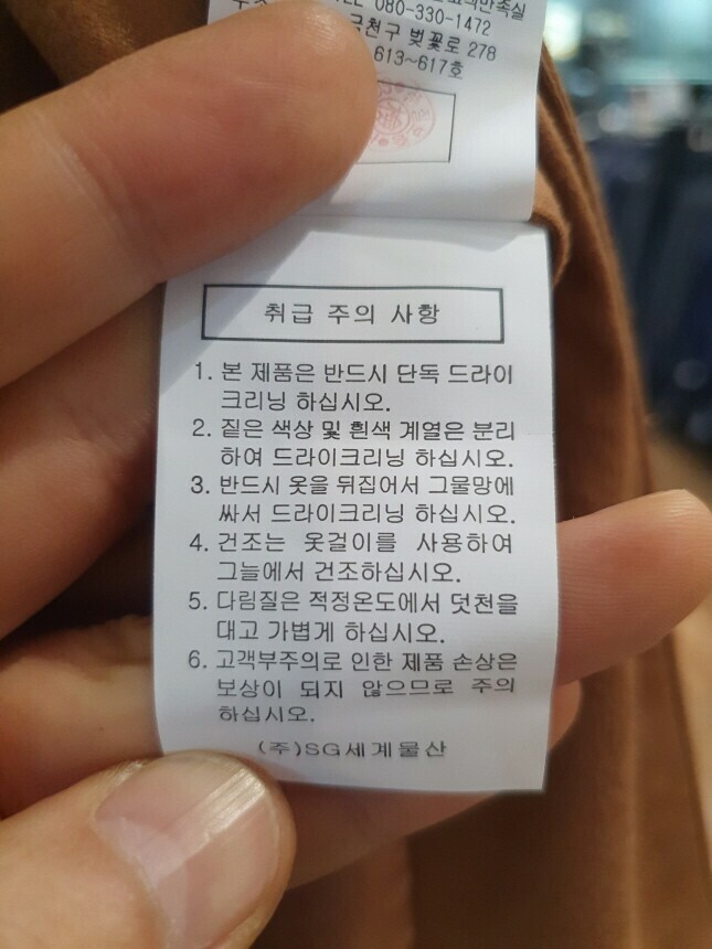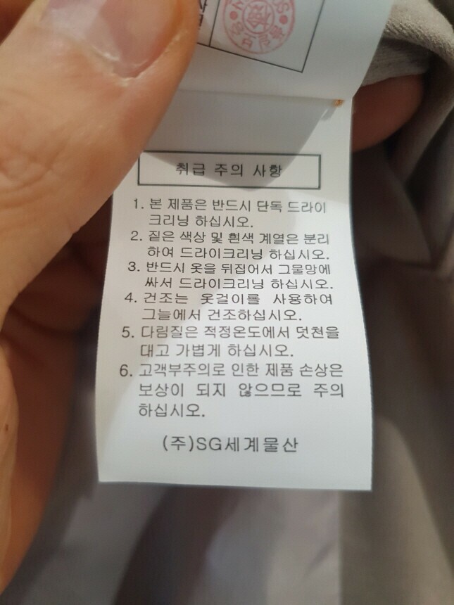 | 6. 세탁방법 및 취급시 주의사항 | 반드시 드라이크리닝 하세요. |
