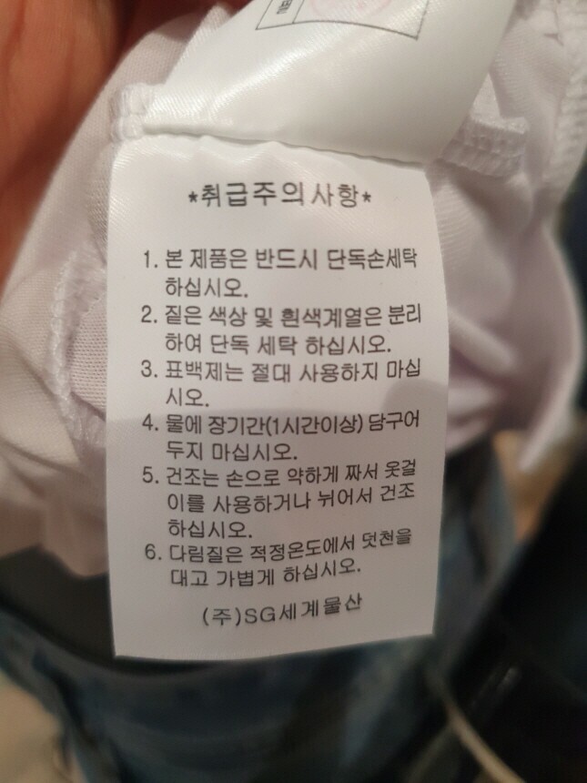 | 6. 세탁방법 및 취급시 주의사항 | 단독 물세탁 |