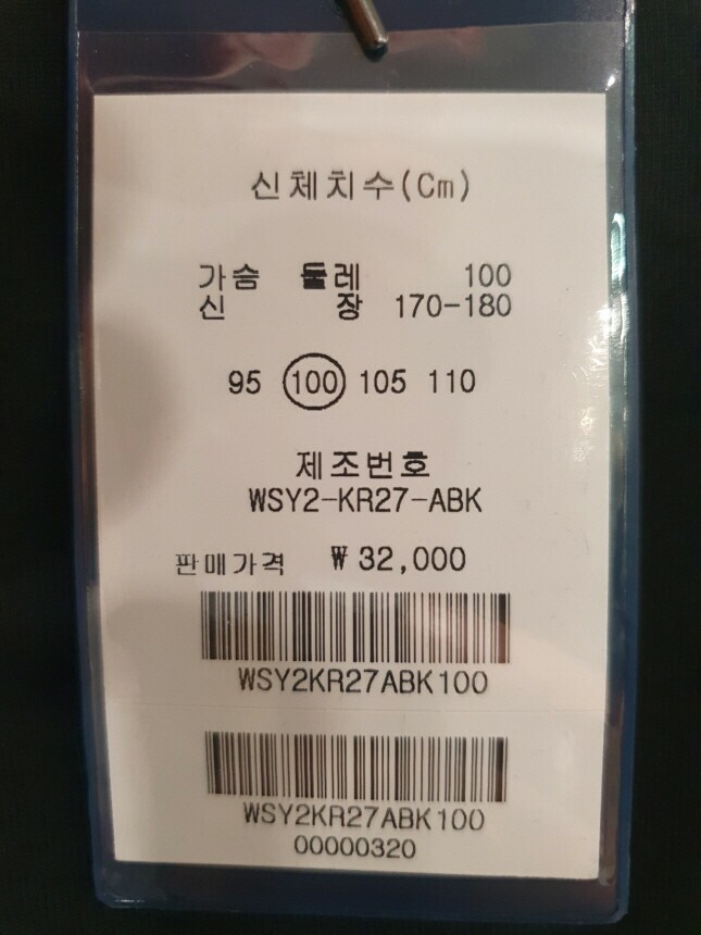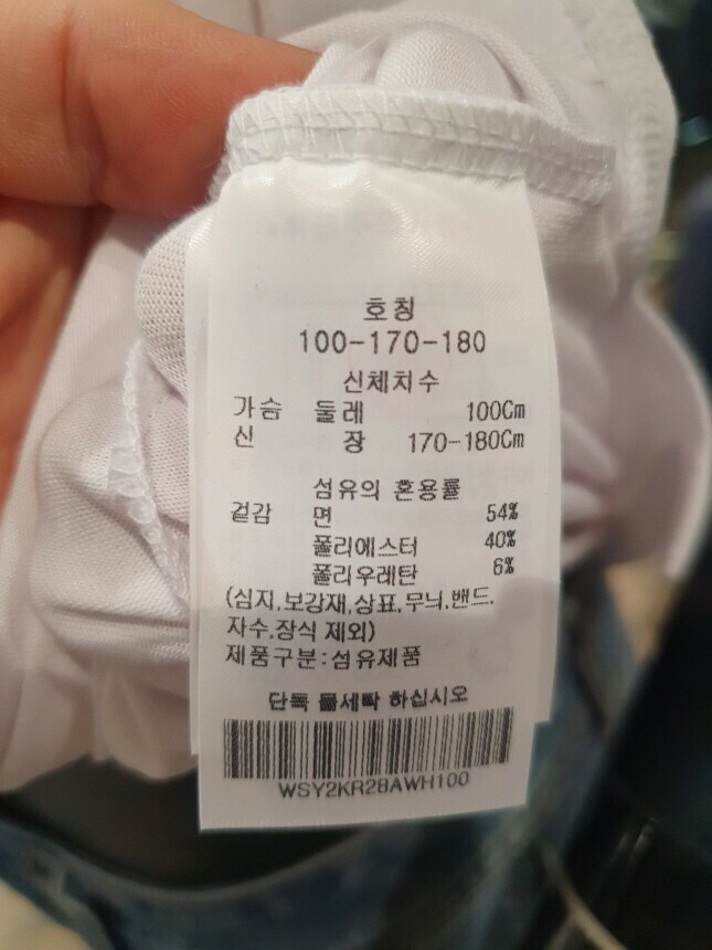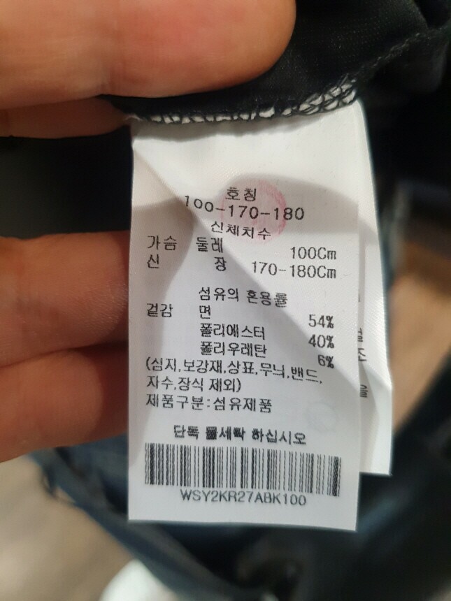 겉감 : 면 54% , 폴리에스터 40% , 폴리우레탄 6%
