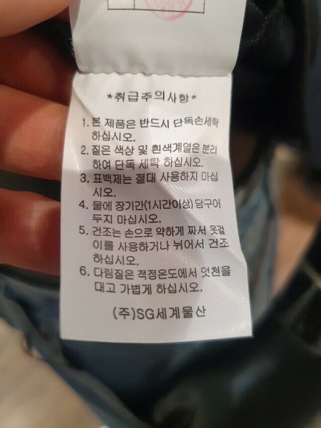 | 6. 세탁방법 및 취급시 주의사항 | 단독 물세탁 |
