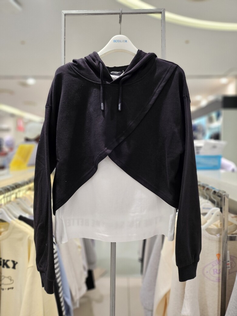 [에꼴리에]24A3459 BK사선 레이어드 후드 세트티