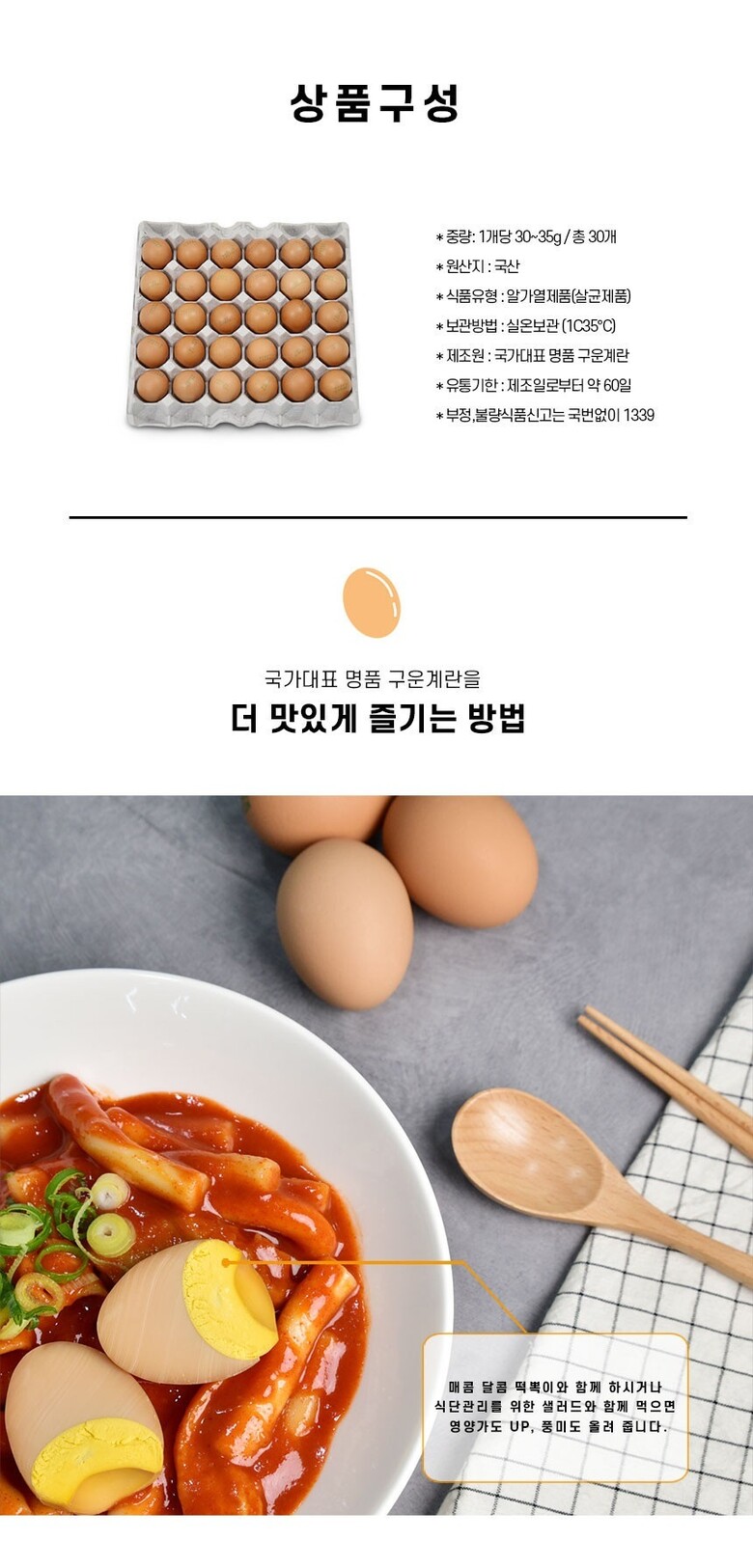 HACCP 인증 국내산 초생란사용 저온방식으로 오래구운 구운계란 60구