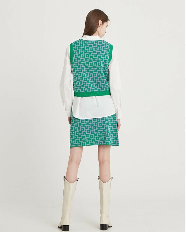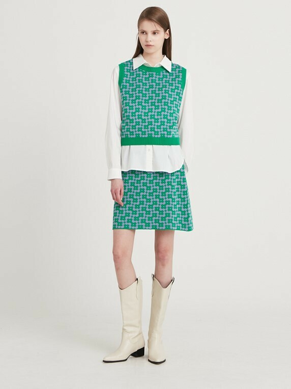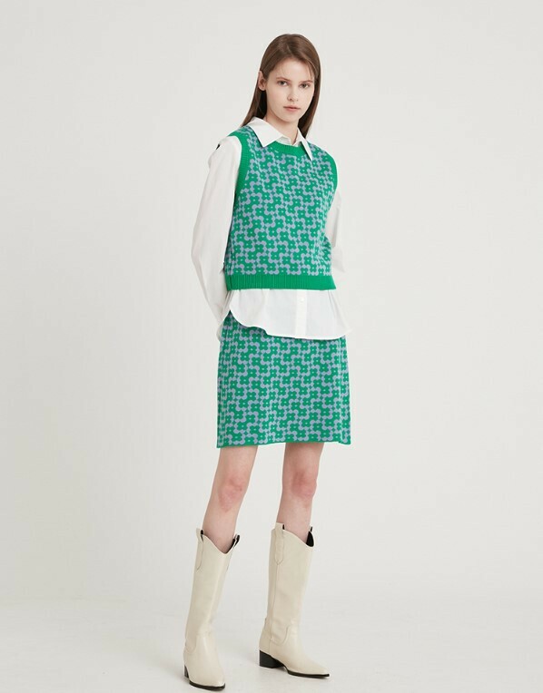 [플라스틱아일랜드] 꽃자가드 니트 스커트 PN2KS381