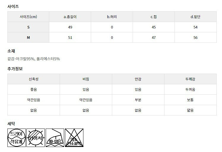 | 7. 세탁방법 및 취급시 주의사항 | 상세페이지 참조 |