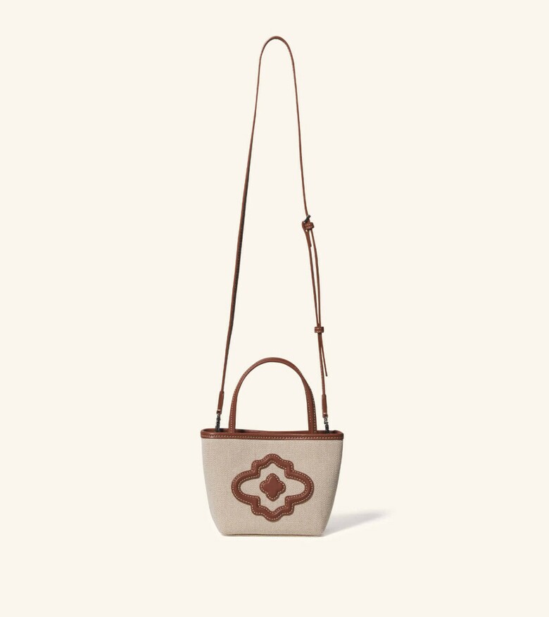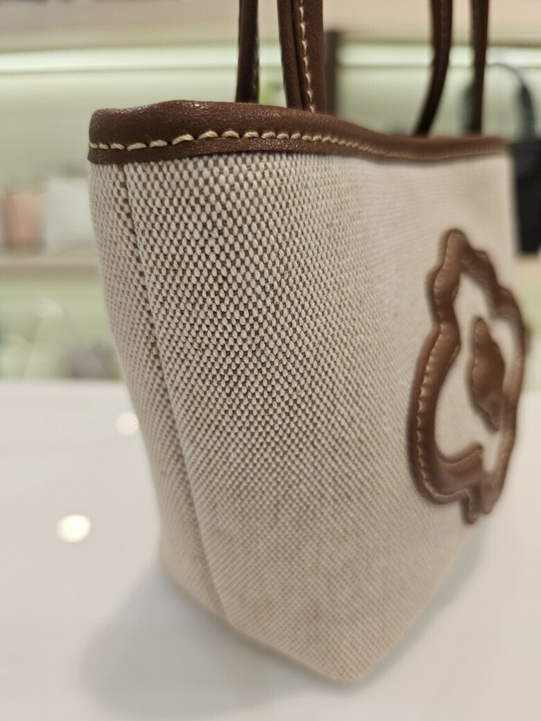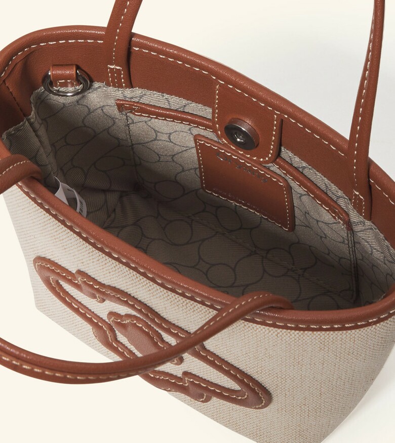 투톤 짜임의 캔버스 원단과 소가죽이 어우러져 캐쥬얼함을 더한 미니 토트백 입니다