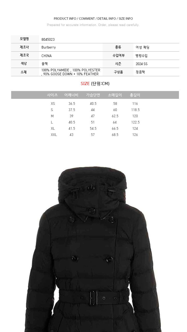 버버리 24SS ASHWICK 벨티드 롱 패딩자켓 블랙 8045023