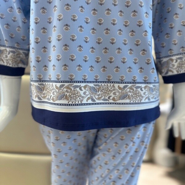 VEV3824 VEP3824-MT_폴리스판 7부 여성 플라워 실내복세트