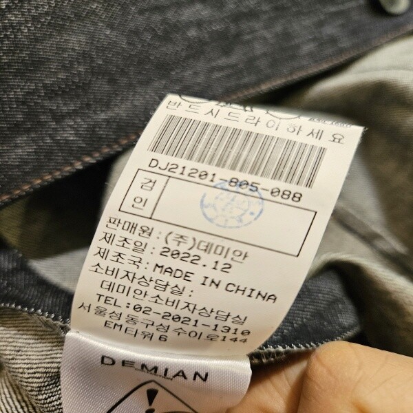 미흡한 마감처리부분(실밥,박음질,초크자국,단추마감,섬유특유의 냄새등)