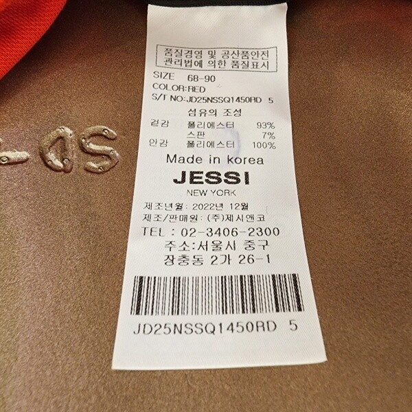 | 1. 제품 소재 (섬유의 조성 또는 혼용률을 백분율로 표시, 기능성인 경우 성적서 또는 허가서) | 폴리에스터93%스판7% |