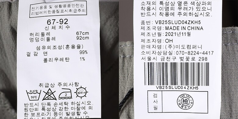 | 6. 세탁방법 및 취급시 주의사항 | 상세페이지 참조 |
