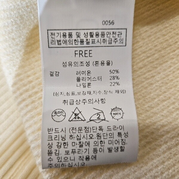 제품소재 : 겉감 - 레이온50%, 폴리에스터28%, 나일론22%