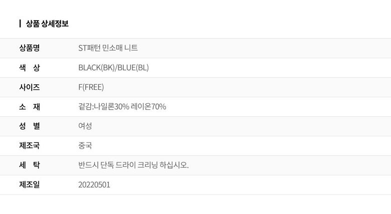 | 6. 세탁방법 및 취급시 주의사항 | 상세페이지 참조 |