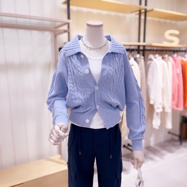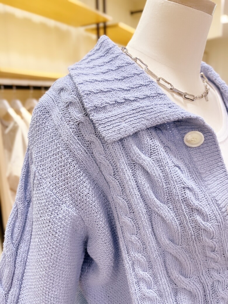 케이블 니트 카라 가디건?군더더기 없이 깔끔한 디자인으로?