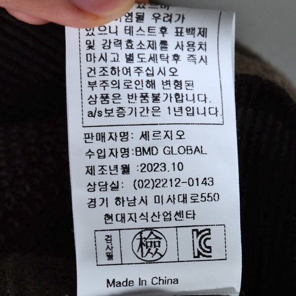 제품소재 : 모6%나일론20%아크릴30%폴리에스터44%
