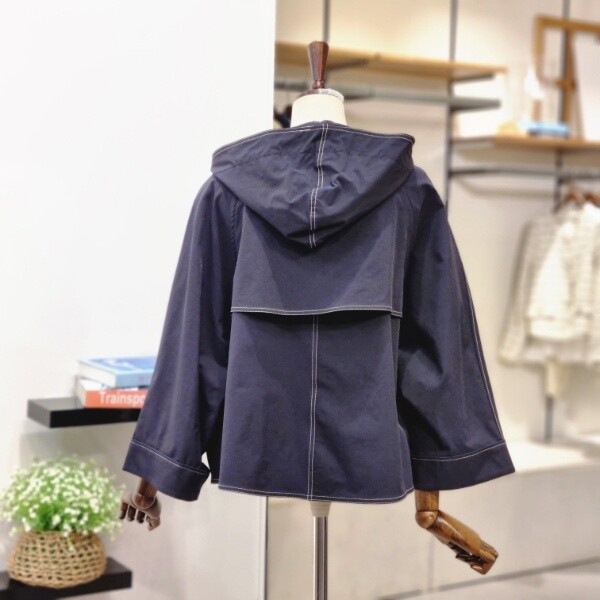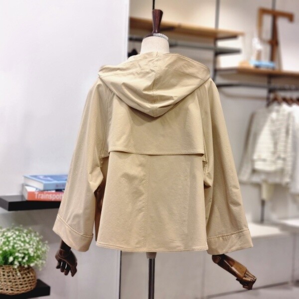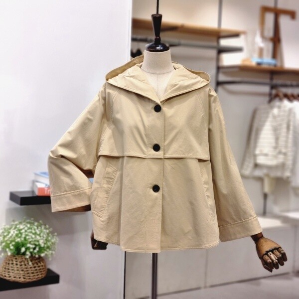캐주얼하면서 여성스러운 분위기의 후드 바바리 자켓이예요
